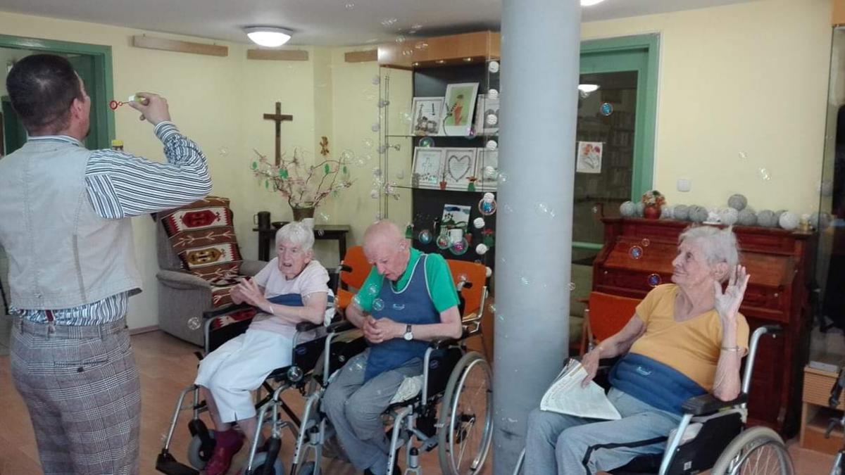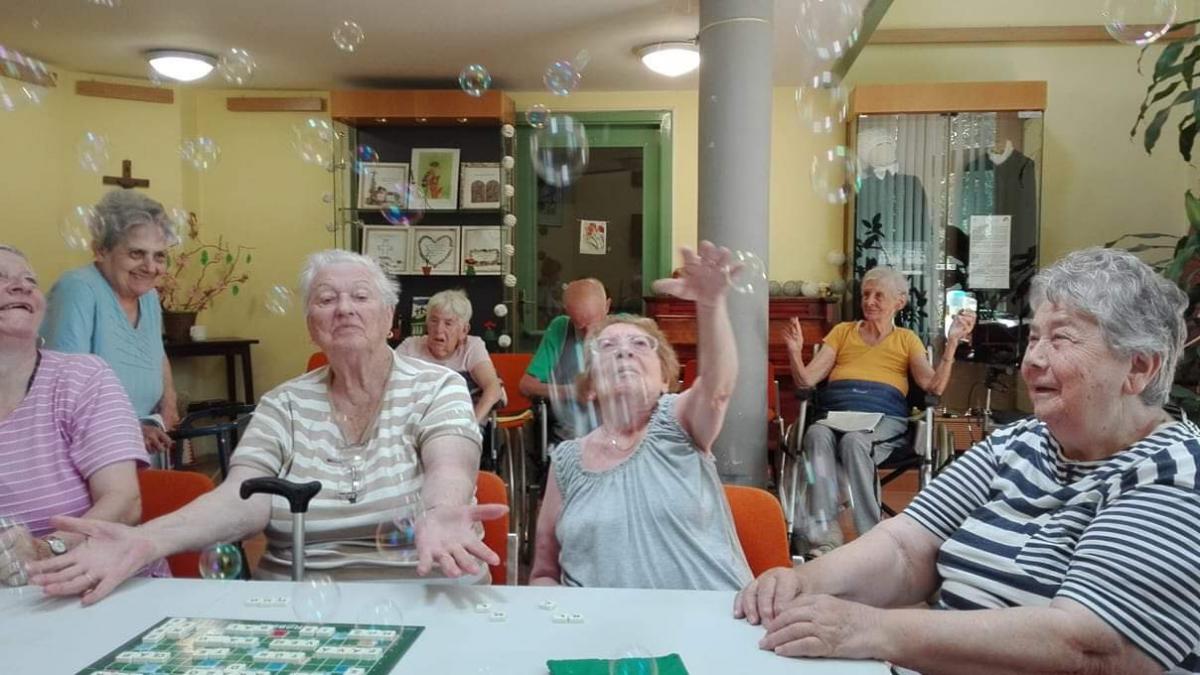 A nap nagy kedvence a szappanbuborék volt. Ebből készölt kicsi-nagy, gyorsan elpukkanó és hosszú életű, ami az egész Máger-termet körbe repülte. A színes és vibráló gömbök nagy örömet jelentettek a kerekes székes lakóknak is.