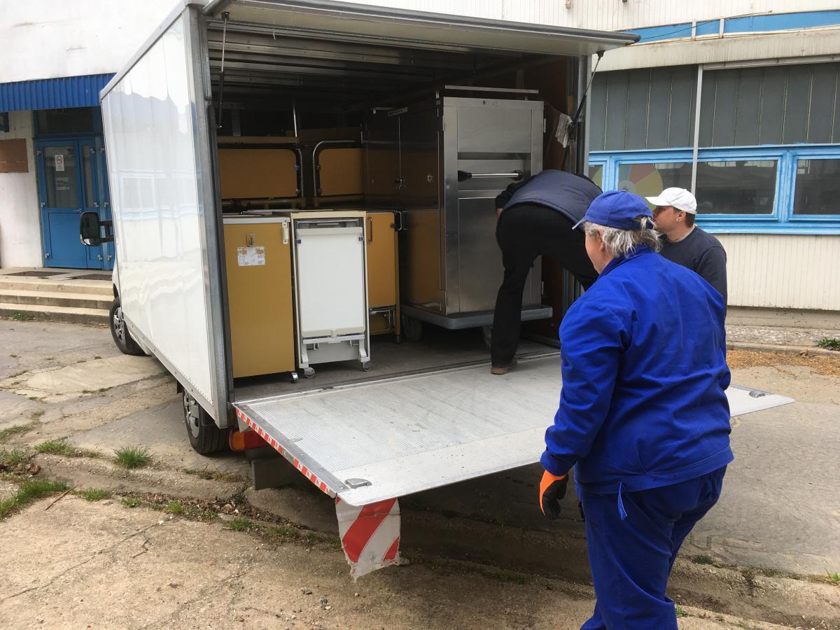 A berakodás során a támogatásunk az előre egyeztetett tárgyakon kívül még egy melegen tartó kocsi adományozásával is kiegészült, mely a meleg étel mozgatását fogja segíteni a kórházban. Ezzel is tudtuk gazdagítani segítségnyújtásunkat.