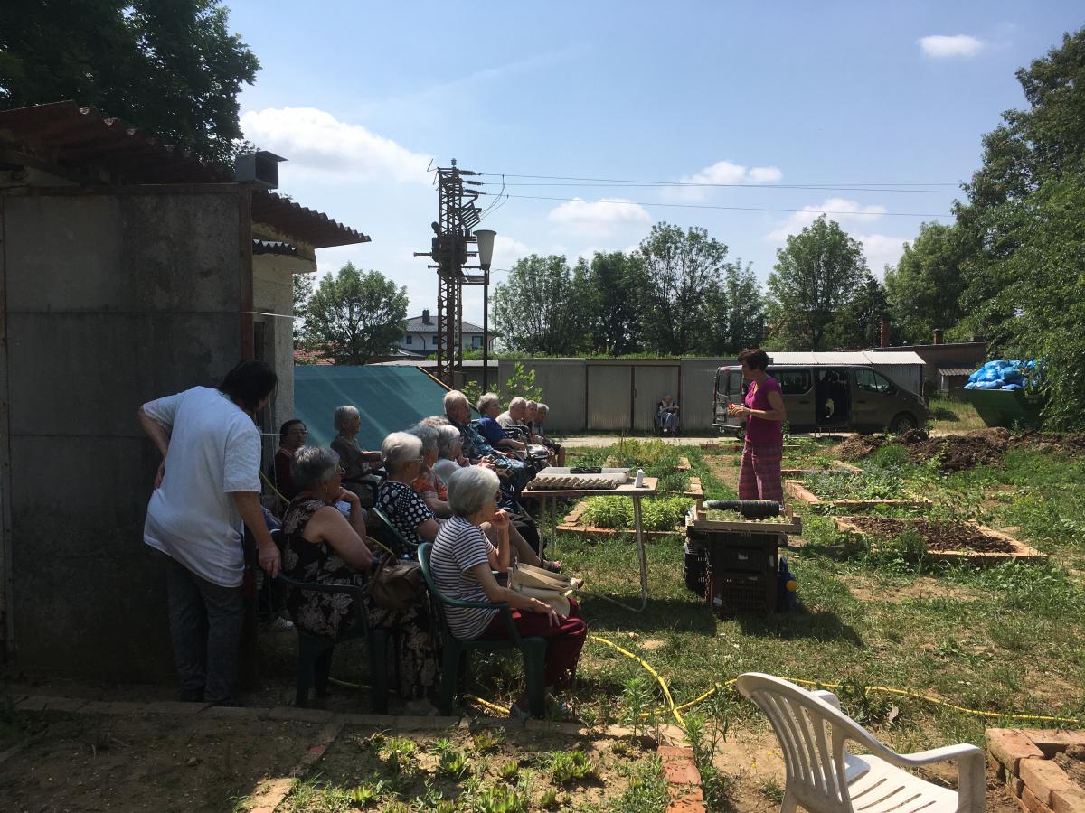 A kertben található növények szervezetre gyakorolt jótékony hatásaival is megismerkedhettek a hallgatok, és régi emlékeiket is felidézték, és kicserélté egymás között. Egyes növények „népi elnevezéseivel” is gazdagították egymást. A demnes fiatalok nagy örömére az előadás közben lehetőség nyílt számukra növény ültetésére a kert több üresen álló ágyásában. Itt az ültetés, az öntözés a szórófej különböző állításával, és a kerti szerszámok használata mind nagy örömmel töltötte el őket. Az előadó saját élményiről is beszélt, hogy Ő mit és hogyan használ a családjával a kertben felelhető növényekből. Itt receptcserékre is adódott lehetőség, valamint a kert megtekintése után, a különlegesebb növényekből sokan kértek palántát, dugványt a rokonoknak és ismerőseiknek.